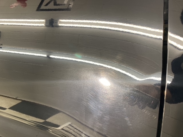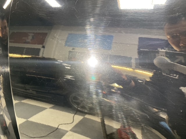 As always, we thoroughly decontaminated the vehicle which is outlined here. This gave us a clear look at the condition of the paint prior to paint correction and ceramic coating. We inspected the paint with our lights and found that it was scratched everywhere. Each panel was full of swirls! The next step was to measure the paint depth to see how much clear coat we were working with. This step is so important! It allows us to power polish the paint safely and ensure we do not burn through the clear coat.